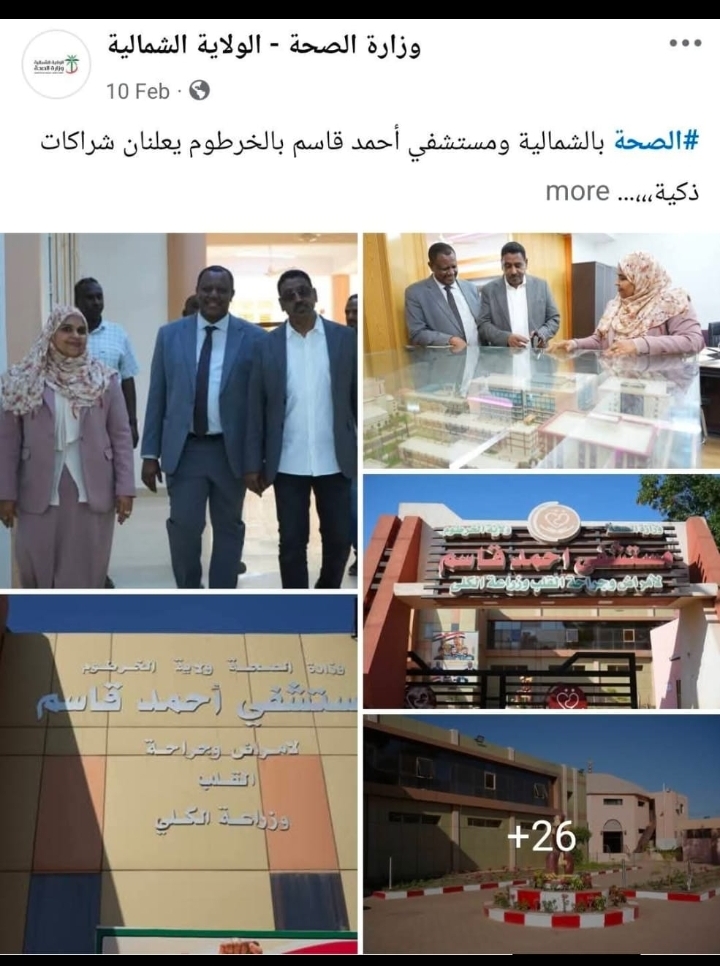 🔳الخبر المنشور حول شراكة (م. أحمد قاسم لأمراض وجراحة القلب وزراعة الكلى التابع لصحة ولاية الخرطوم مع صحة الولاية الشمالية التابعة لوزارة الصحة الاتحادية السودانية ) جعل الجميع يسأل في دهشة واستغراب.. هل يحق للمستشفيات التابعة لولاية معينة عقد شراكات أو اتفاقيات مع وزارات الصحة بالولايات الأخرى دون الرجوع لوزارة الصحة التابعة لها هذه المستشفى المعينة.. يعني هل رجع م. أحمد قاسم لأمراض وجراحة القلب وزراعة الكلى لإدارة الطب العلاجي بوزارة صحة ولاية الخرطوم وهو يعقد مثل هذه الشركات؟ .. وهل المدير الجديد مستر محمود البدري على علم بهذه الشراكة؟