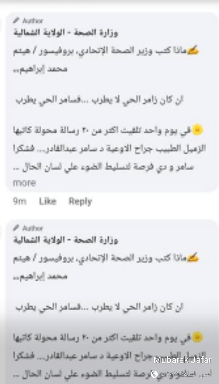 📌 مبارك جعفر يكتب : يا اخوانا الحقوا أدمن صفحة (صحة) ولاية الشمالية.